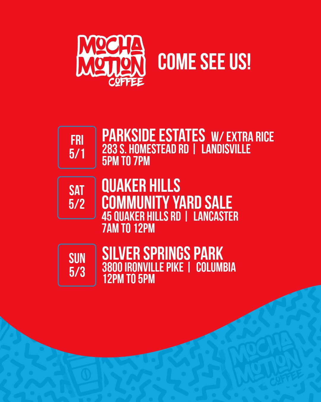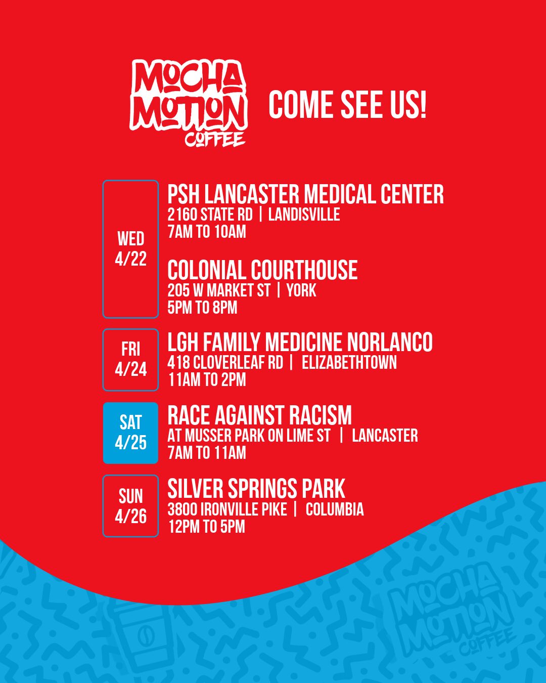 Mocha Motion Coffee – we’re a mobile, boutique beverage bar serving Lancaster, PA! We feature meticulously handcrafted espresso drinks, vibrant matcha and teas, real-fruit smoothies, and refreshing acai bowls!